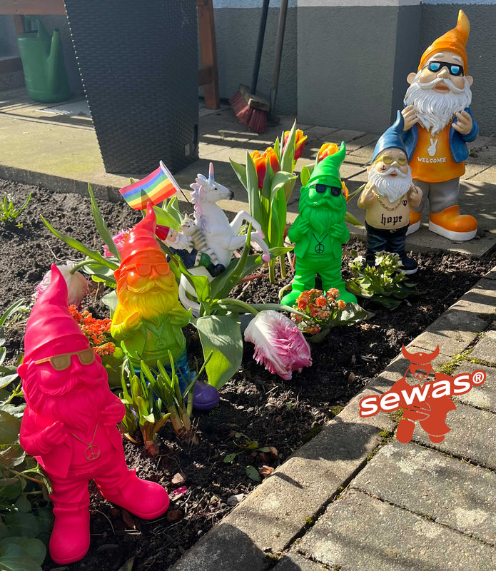 Gartenzwerge schmücken seit Jahrhunderten die Vorgärten, doch geraten seit ein paar Jahrzehnten zunehmend in Vergessenheit. Die traditionellen Figuren mit Gießkanne, Schubkarre und Spaten gelten als spießig, langweilig und nur noch für die älteren Generationen interessant. Doch wir befreien Gartenzwerge und Gartenfiguren von ihrem verstaubten Image und leiten das neue Zeitalter der Gartendeko ein. Entdecke coole Gartenzwerge in leuchtenden Farben mit einer Prise Humor für deinen Garten oder als schönes Geschenk!