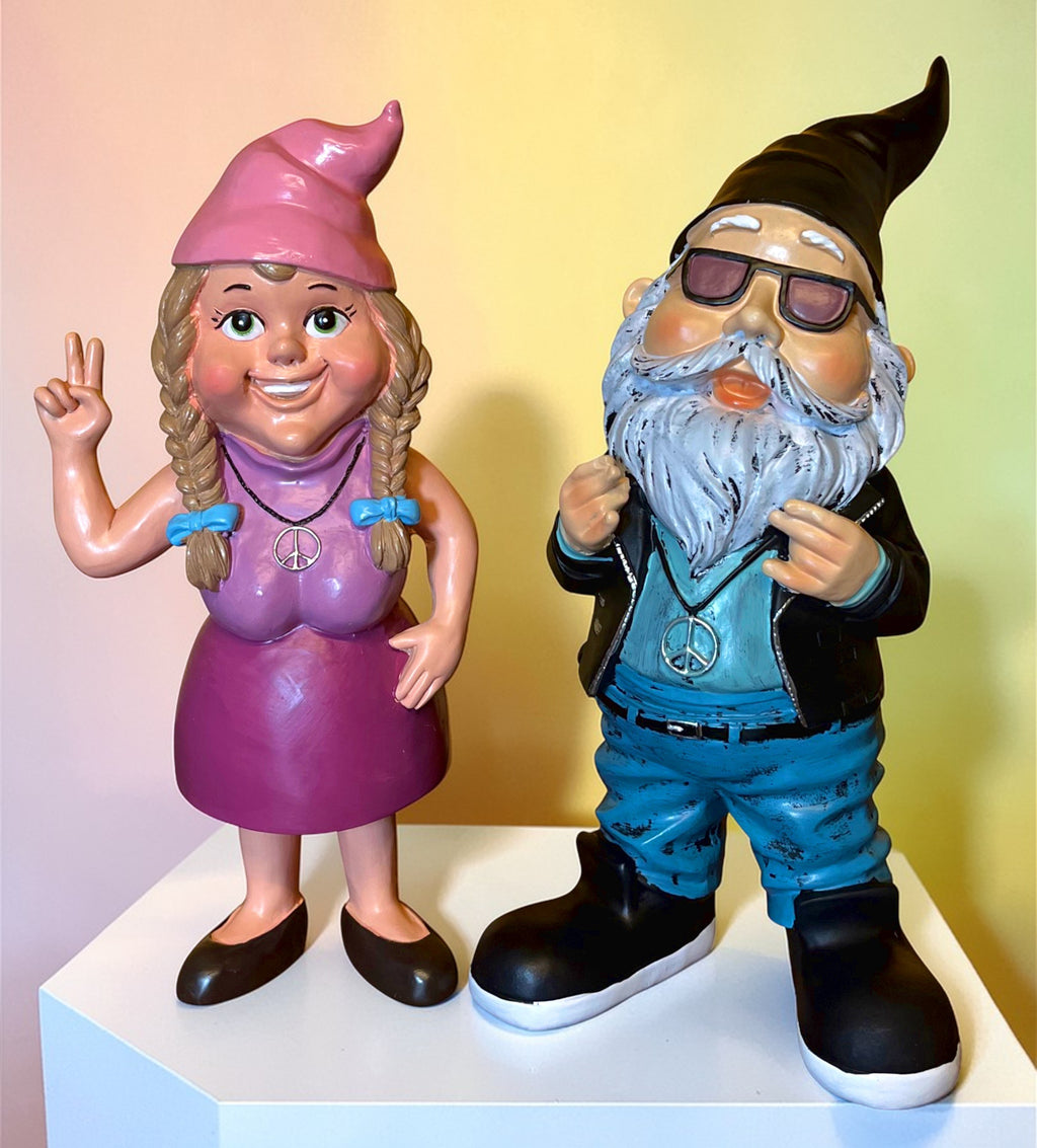 King & Queen - Unser beliebter Zwerg mit Peace Kette zusammen mit unser bezaubernden Zwergin im Set zum Vorteilspreis. Hol sie dir nach Hause oder verschenke etwas ganz besonderes!