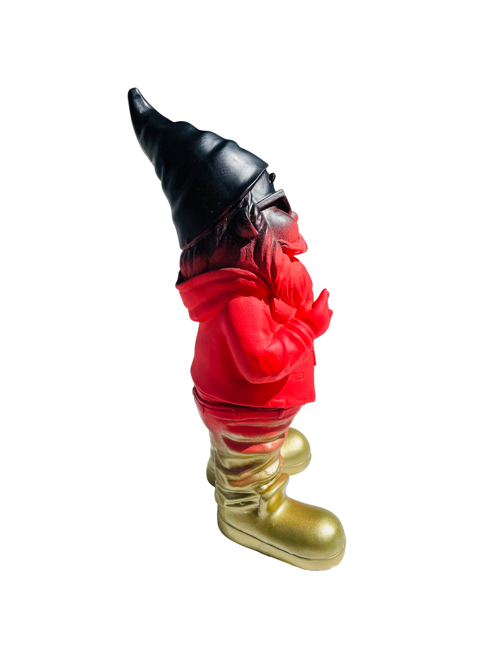 • [EINZIGARTIGES DESIGN] - Gartenzwerg mit Peace Kette - Schwarz / Rot / Gold Deutschland-Design