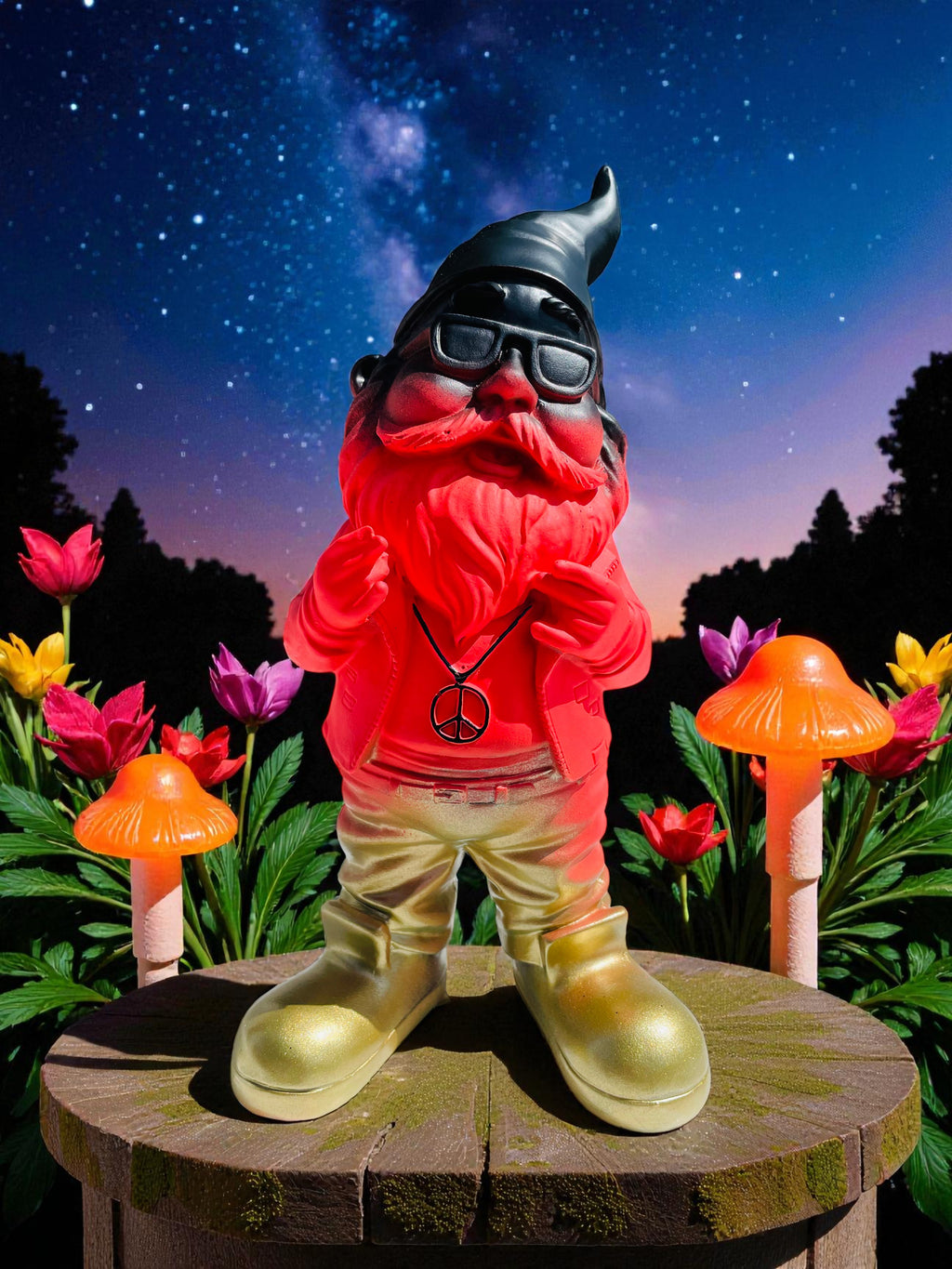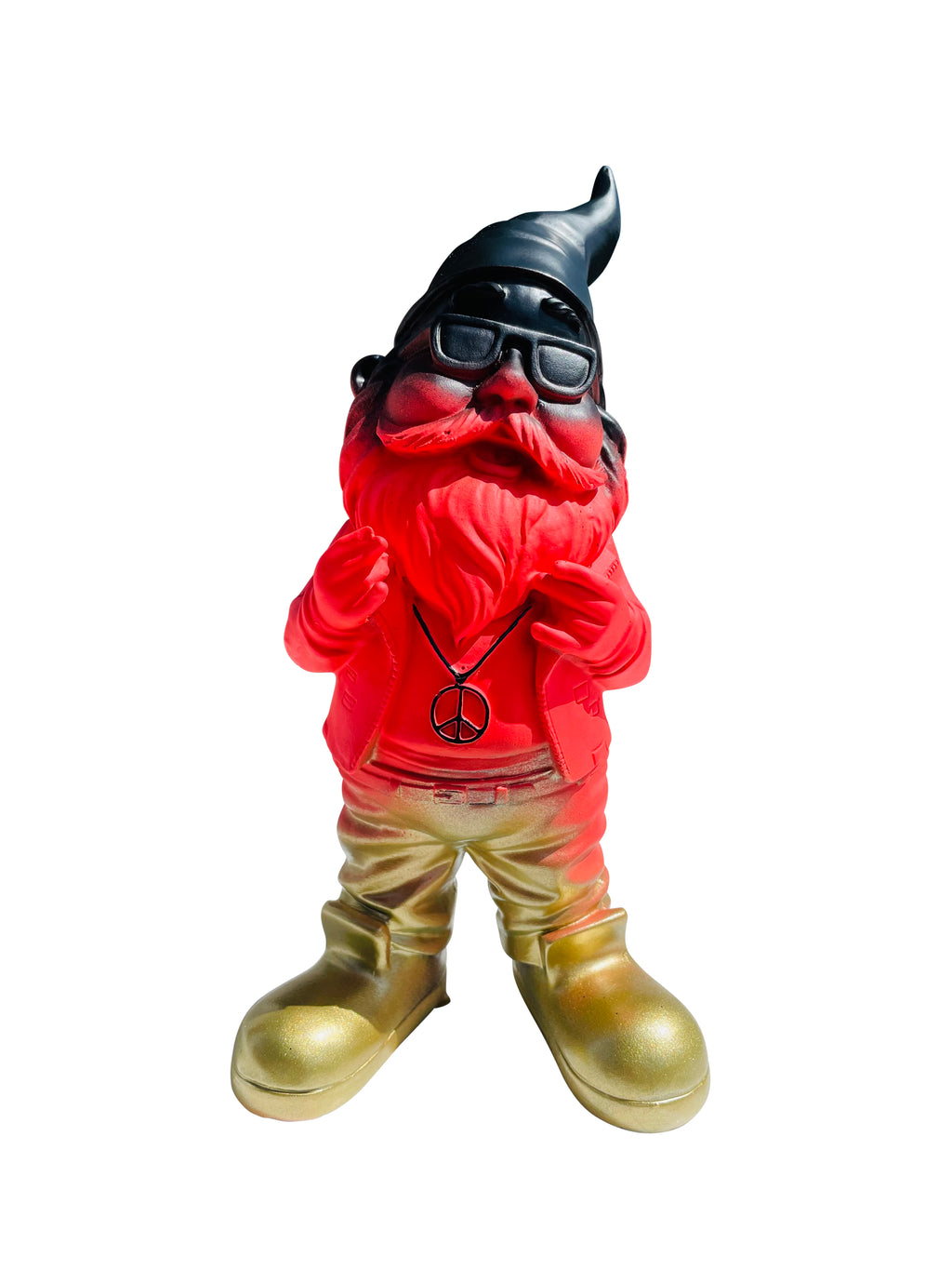 Der Gartenzwerg Rocker mit Peace Kette macht sich wunderbar in deinem Wohnzimmer oder Garten. Schaffe eine entspannte Atmosphäre und sichere dir den ein oder anderen Blick. Perfekt als Geschenk an dich selbst oder deine Lieben.